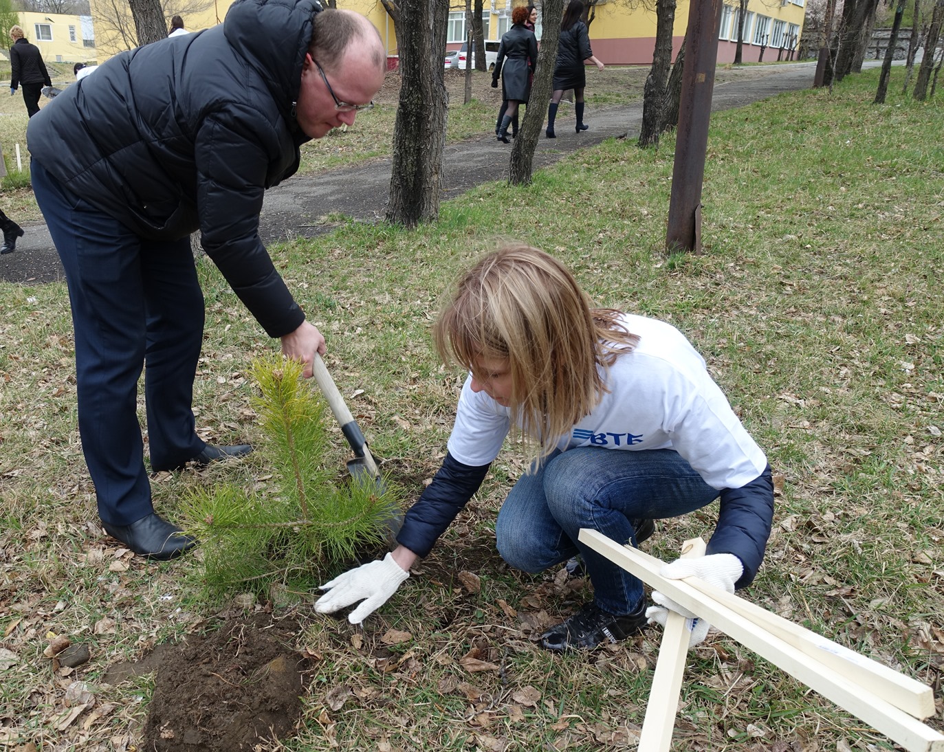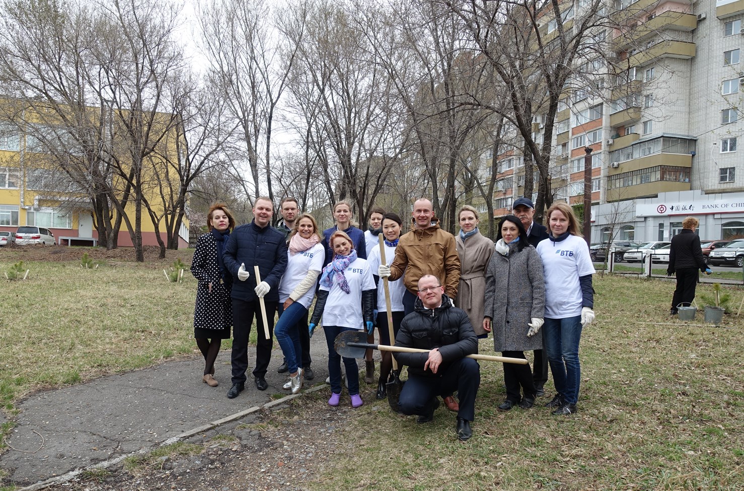 В рамках акции «Сад ВТБ» сотрудники банка посадили в Хабаровске сосновую аллею на территории гимназии №3.