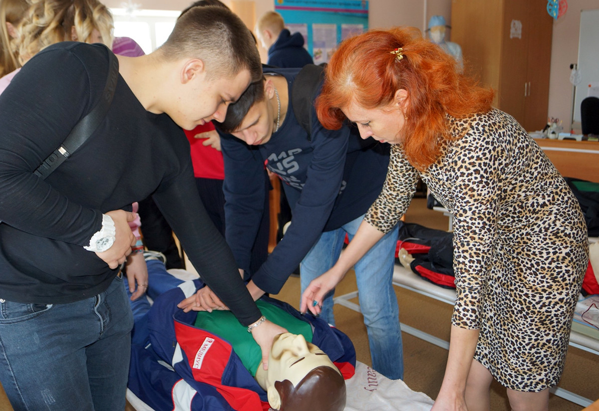 Во время встречи студентов с командой Дальневосточного регионального поисково-спасательного отряда (ДВРПСО) МЧС России начальник аэромобильного медицинского обеспечения и эвакуации пострадавших Александр Лунин рассказал студентам о задачах медицинской службы, медицинском вертолётном модуле, его предназначении и незаменимости при эвакуации пострадавших из зоны ЧС. В кабинете медицинской подготовки студентам кратко рассказали об алгоритме оказания помощи человеку в бессознательном состоянии. А под руководством сотрудников мед. службы на манекенах конкурсанты смогли самостоятельно провести сердечно-лёгочную реанимацию взрослому человеку и младенцу. Также студенты смогли задать наставникам уточняющие вопросы, важные для разработки проекта, а в заключение встречи ребятам вручили практические пособия по правилам оказания первой помощи, которые могут им пригодиться как в жизни, так и для работы над проектом.