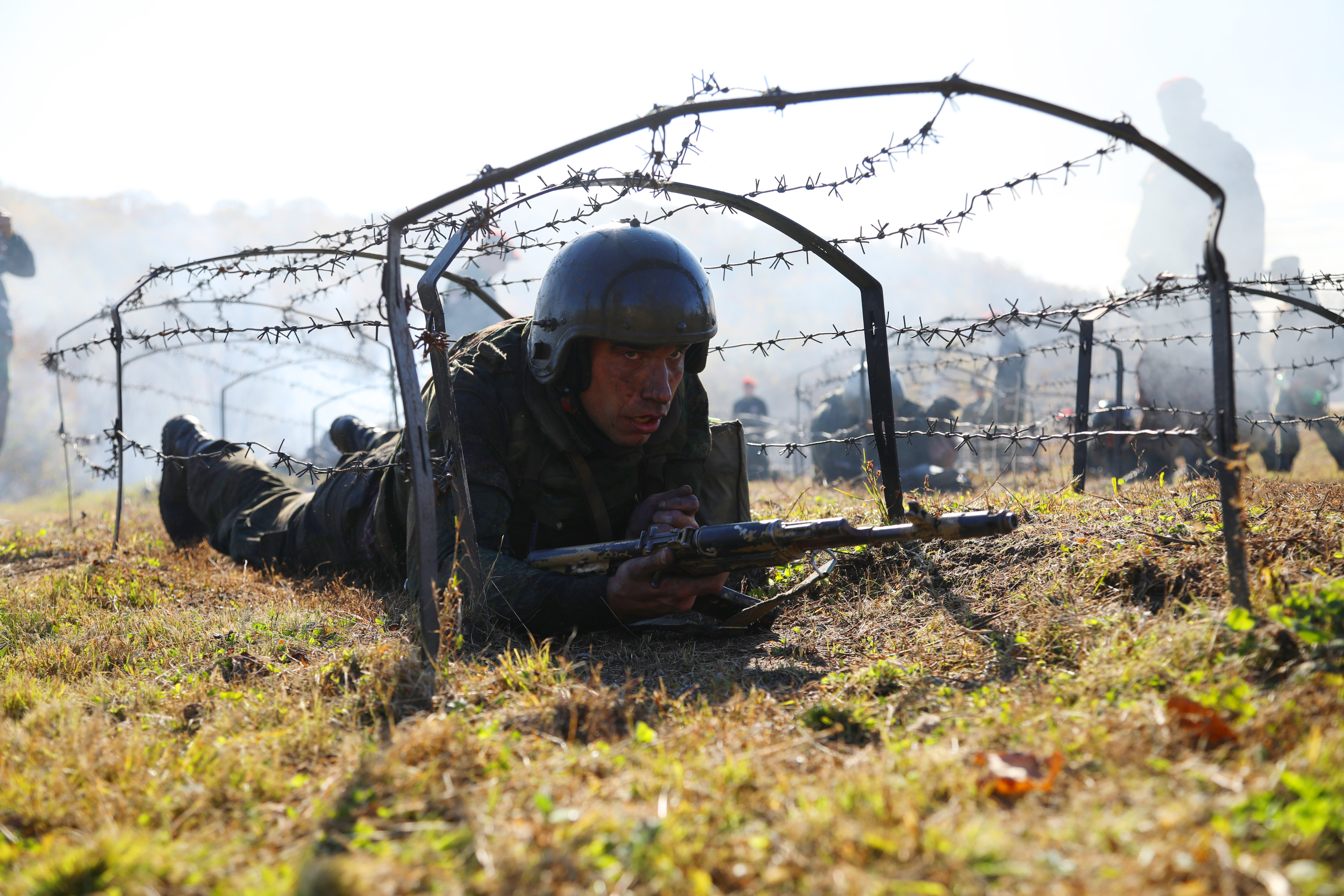 Во время преодоления сложнейшего марш-броска от инструкторов-краповиков ежеминутно поступали различные вводные, требующие от спецназовцев предельного сосредоточения, выносливости и реакции. Им приходилось ползти в грязи, переносить условно раненого товарища, в противогазе преодолевать не одну сотню метров по пересеченной местности в условиях, приближенных к боевым.