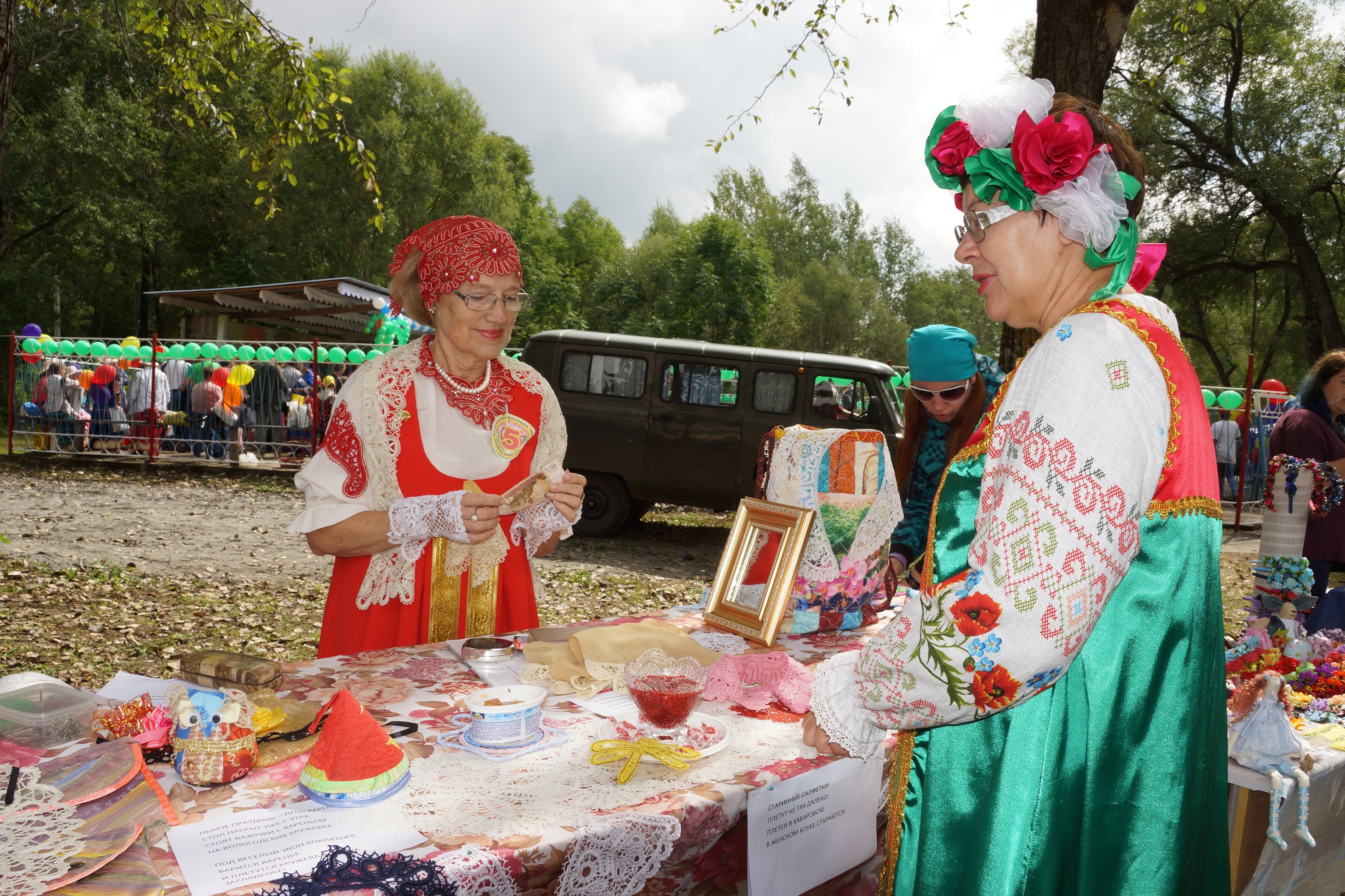 Первой на мероприятии стала работать ярмарка «Покупай местное», где были представлены в основном изделия народных промыслов, сувениры и выпечка, в том числе румяные блины, а также соленья и большой ассортимент свежих овощей с грядки.